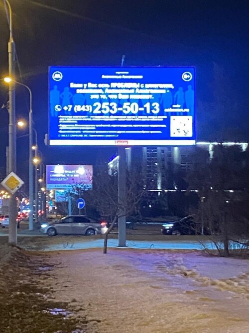 Билборды привлекают внимание широкой аудитории, помогая донести важную информацию о наличии бесплатных групп поддержки для людей, сталкивающихся с проблемой алкогольной зависимости.